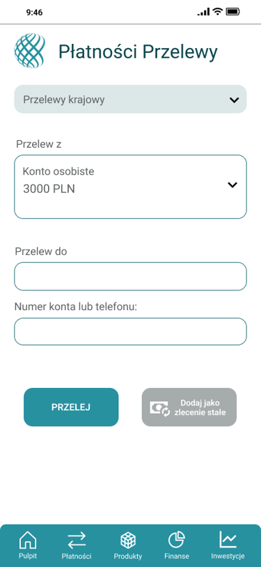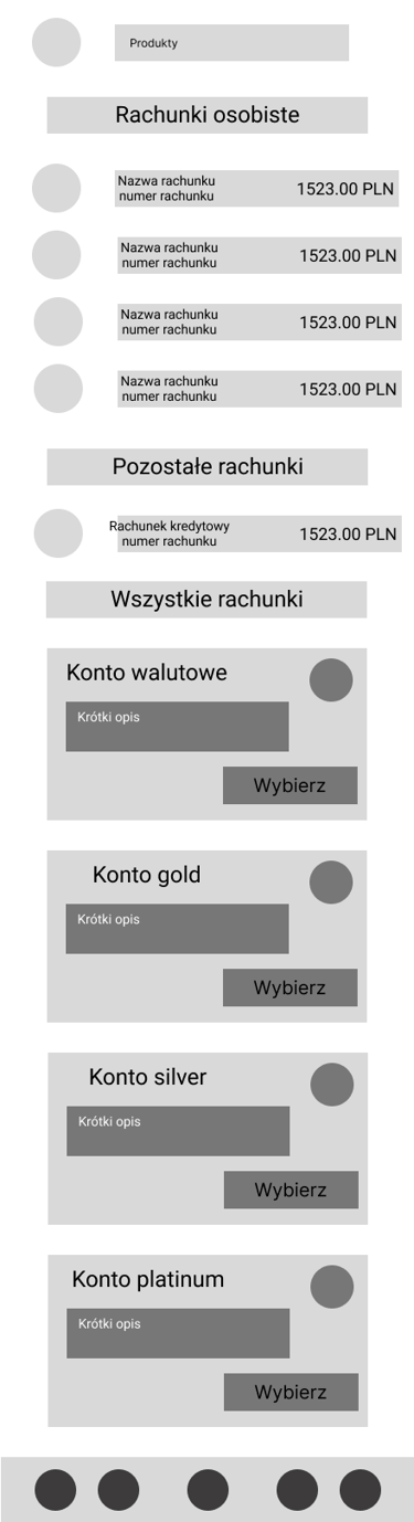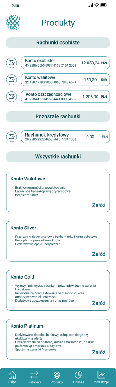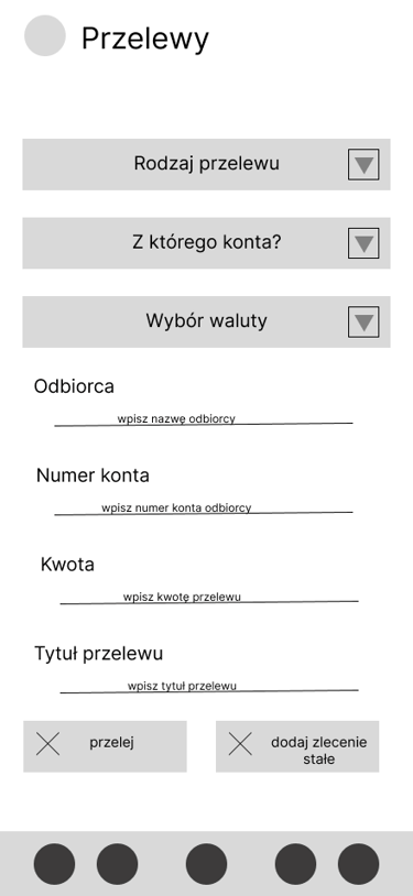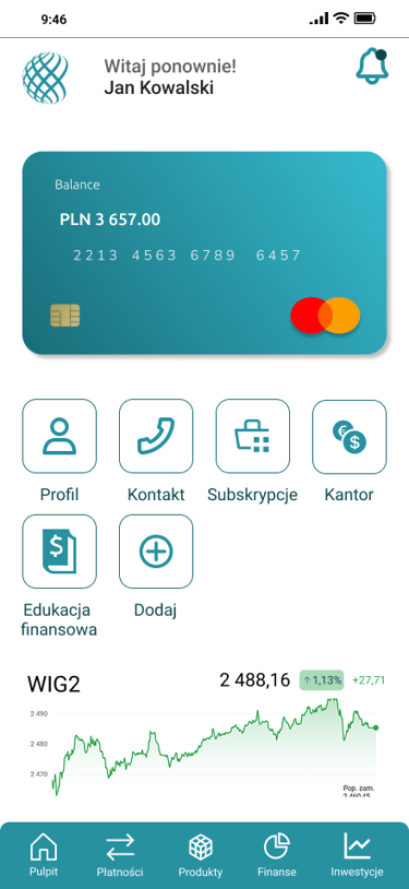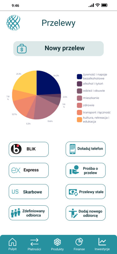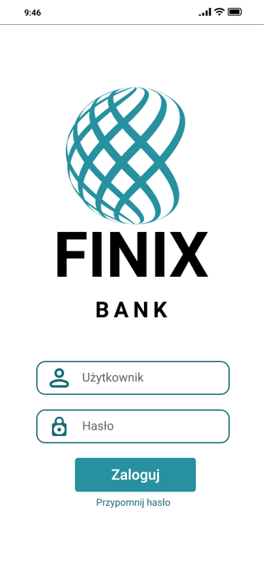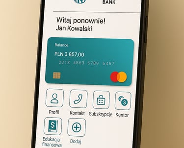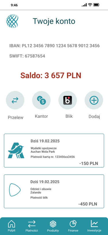 Odwzorowany finalny wygląd i funkcjonalność aplikacji bankowej