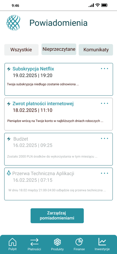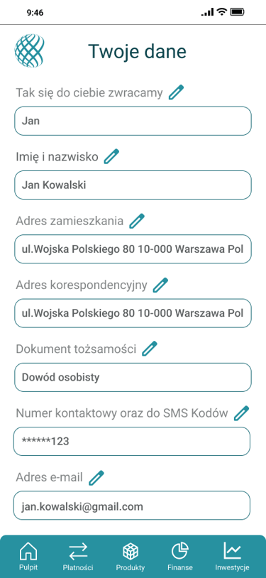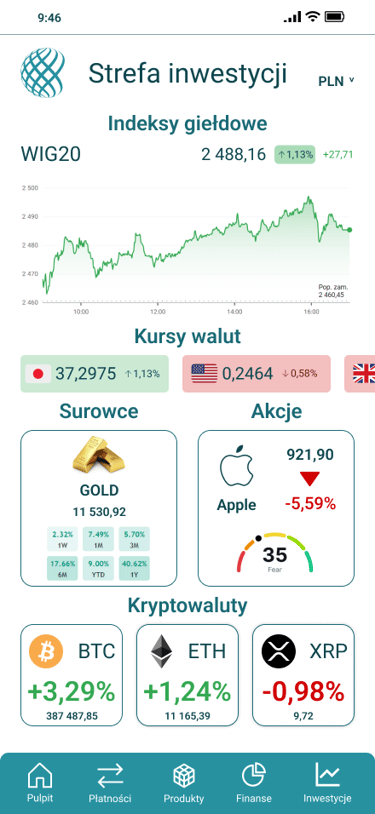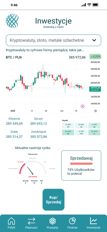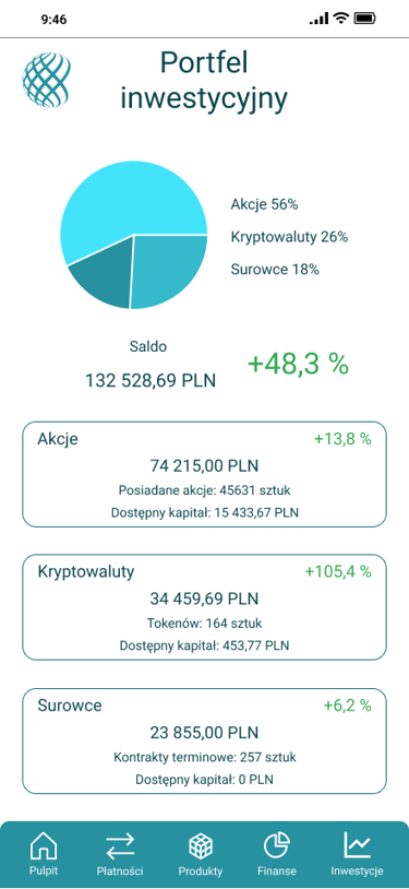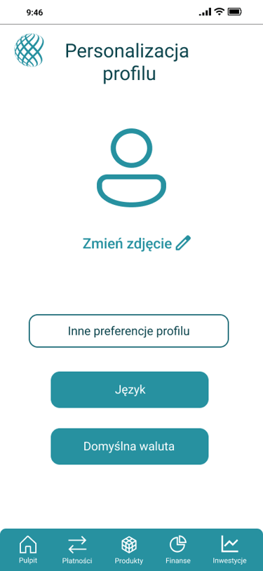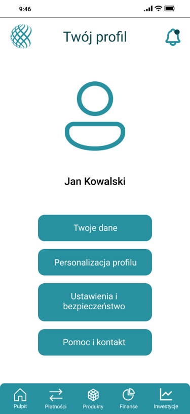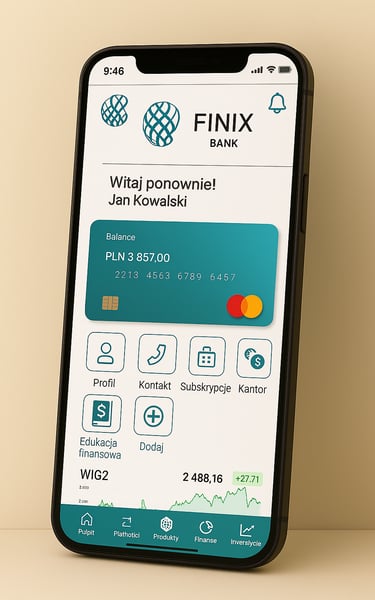 Projekt aplikacji mobilnej banku, skupiający się na personalizacji doświadczenia użytkownika oraz segmencie inwestycyjnym.